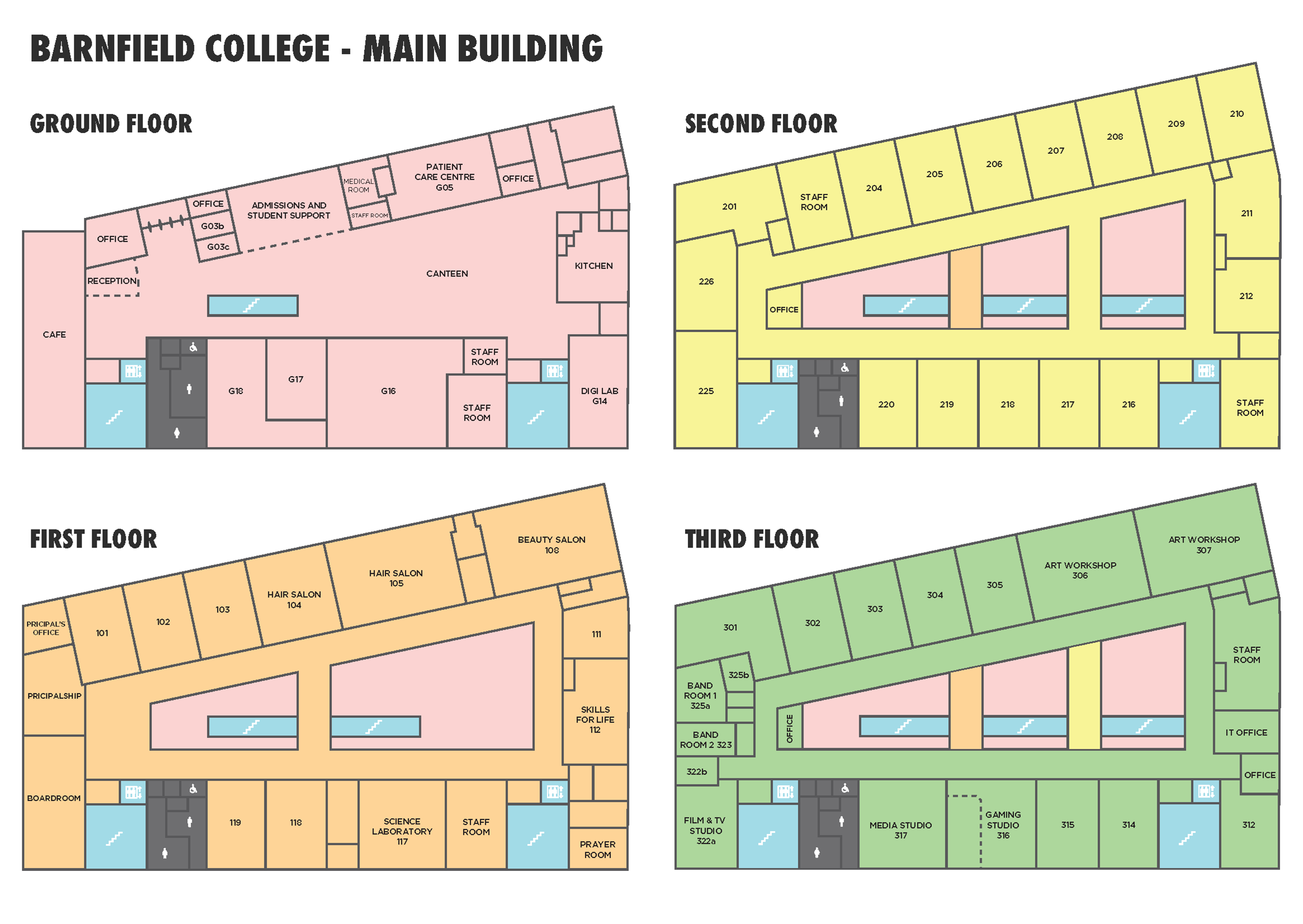Our main building houses a wide variety of specialist facilities, including Science and Computer Labs, Art Studios, Salons, a Healthcare ward, Music studios, Media suites, and a Digital Gaming workshop amongst many more specialist classrooms.